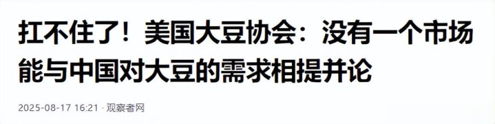 但这种脱离市场现实的话术,终究无法改变中美大豆贸易的真实格局,也难以掩盖美国农业在全球竞争中面临的深层危机。