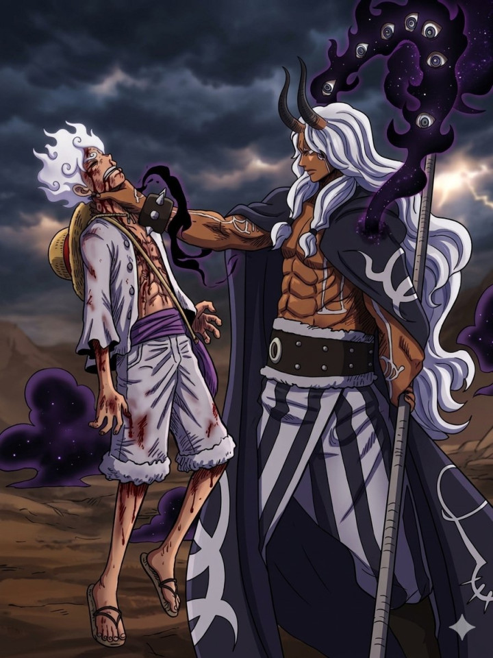 而伊姆大人为了对付尼卡和尼德霍格,不惜从圣地玛丽乔亚来到巨人岛艾尔巴夫,让我们见到了这位最终BOSS·世界之王的庐山真面目。被尾田大神雪藏了8年之久的伊姆,没想到居然是一位男性,而且他的形态还是恶魔,代表萨博当初所说的【没想到世界政府顶端藏了一个地狱】。